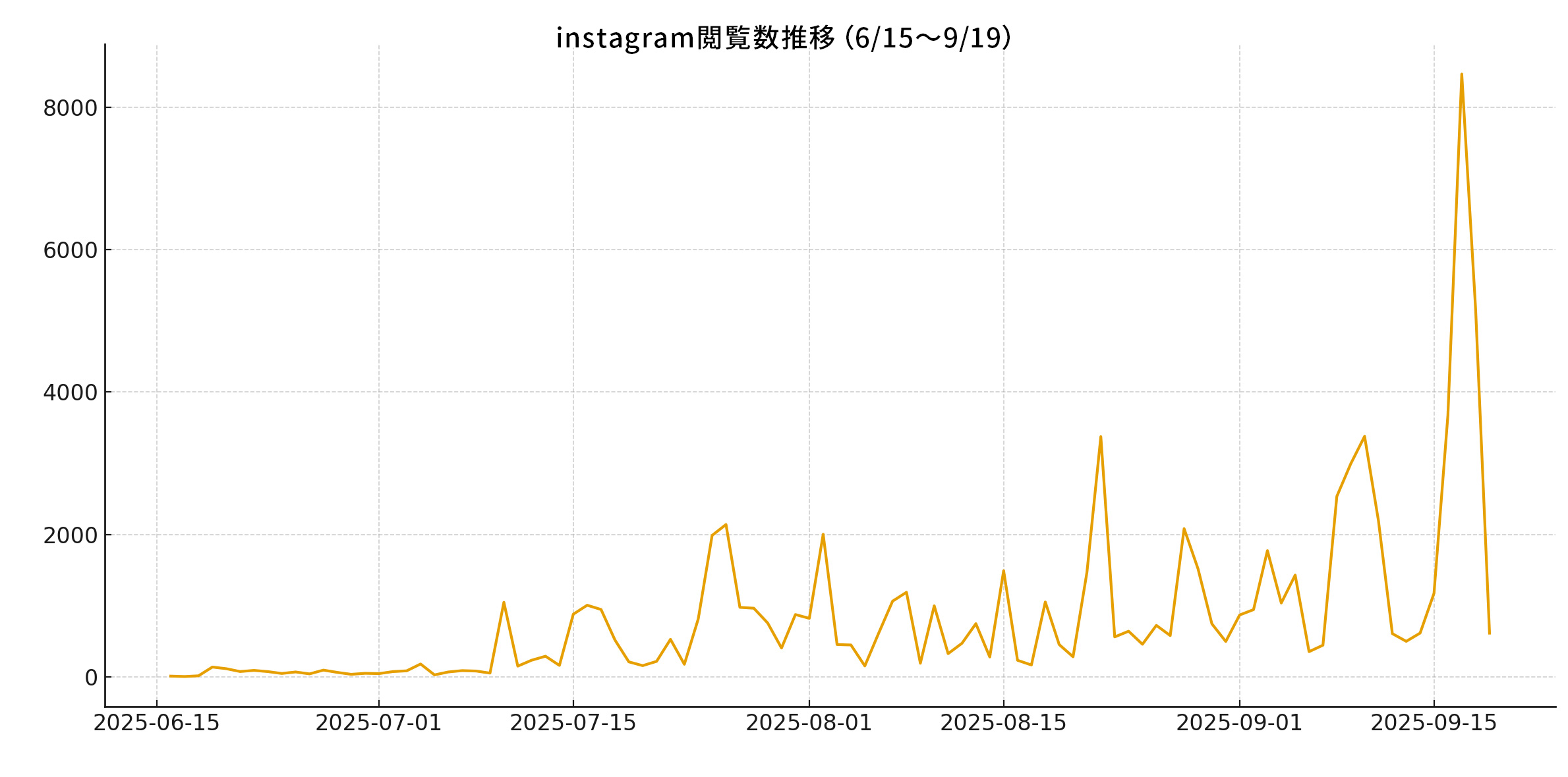 Instagram総インプレッション数:2025年9月1日〜9月30日時点:71,000件超(先月同期間比 約3.38倍)