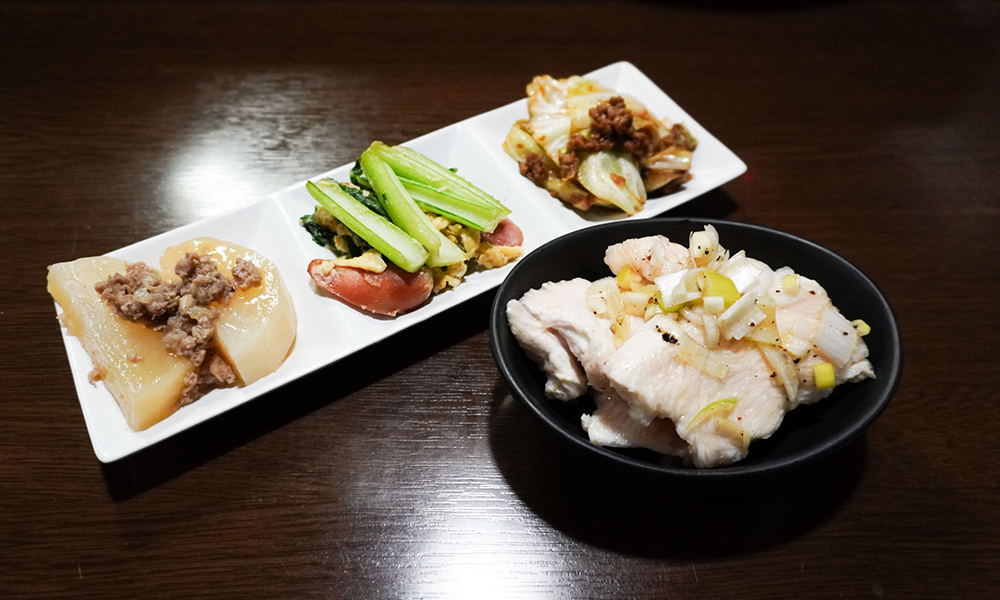 - 大根の鶏餡かけ:やさしい鶏の旨みがじんわり染み込んだ一品