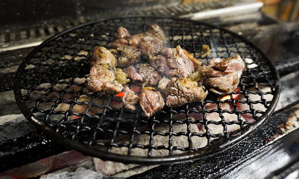 炭が弾ける音とともに、香ばしい香りが広がり、肉の旨みを最大限に引き出していきます。